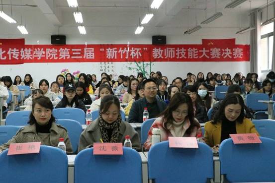 2020年11月6日,文化传媒学院第三届“新竹杯”教学技能大赛决赛在三教3388教室如期举行。文化传媒学院党总支副书记张颖,文传传媒学院副院长王刚,文化传媒学院文学教研室主任康文等老师出席了比赛。贵阳市南明区教师与学习资源中心语文教研员、中学语文高级教师钱萍,贵阳市第十五中学教务主任、中学语文高级教师崔艳,贵阳市南明区第一实验中学语文一级教师沈薇,文化传媒学院语文教育教研主任黄薇副教授担任评委。共有七名选手参加决赛,文化传媒学院汉语言文学专业的150余名同学旁听了本次比赛。