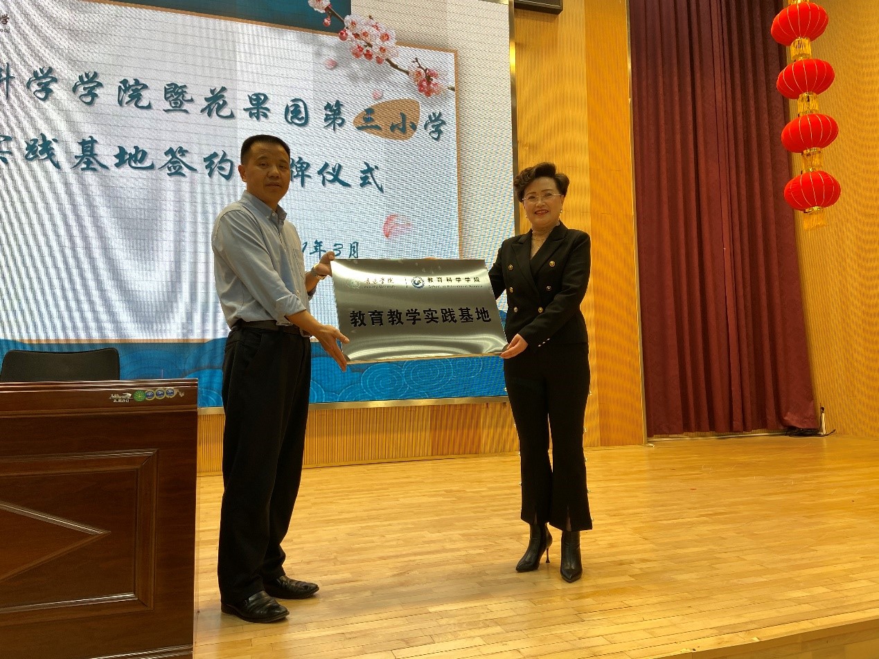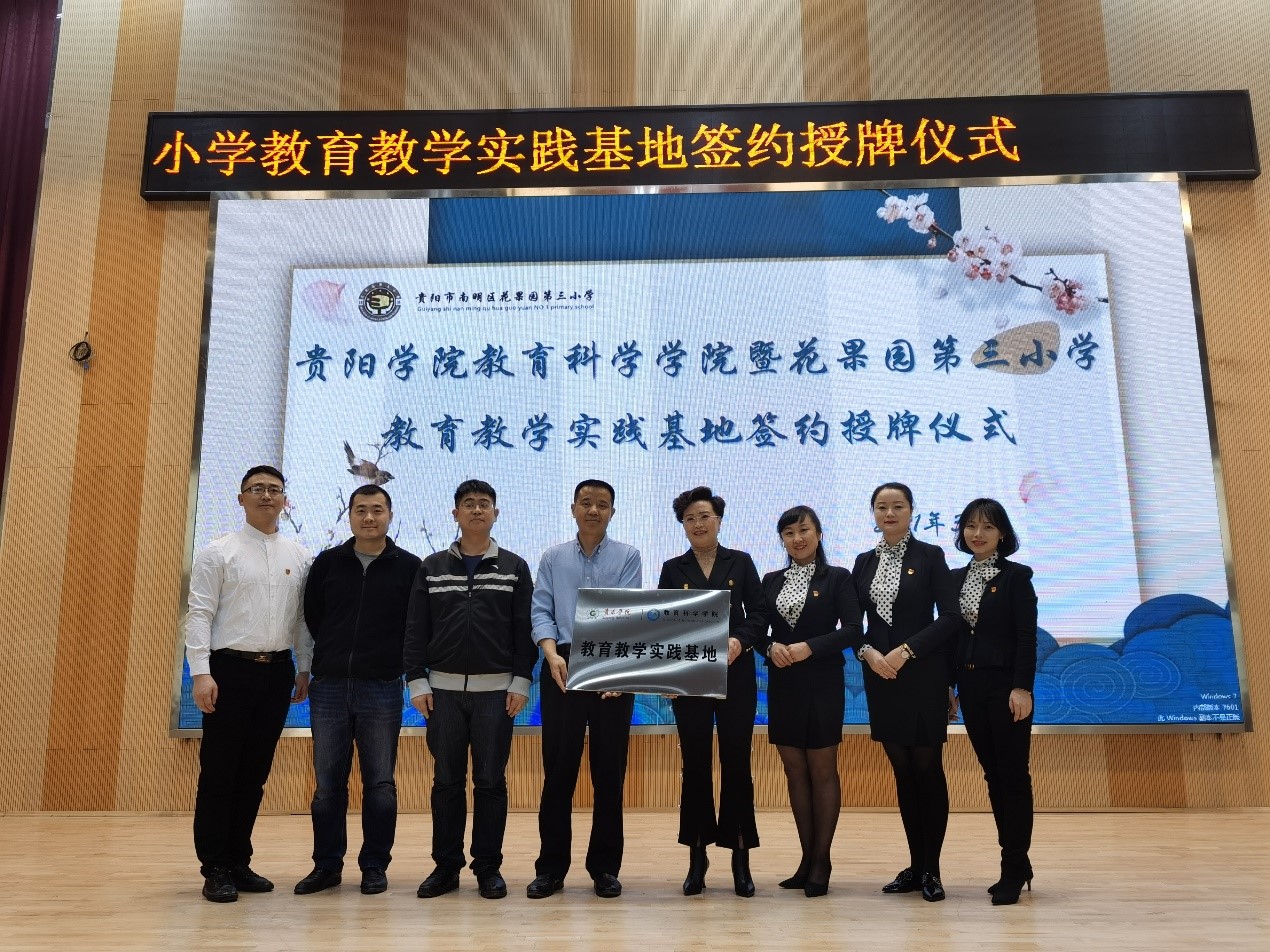 3月17日,教育科学学院在长期酝酿的基础上,成功与贵阳市花果园第三小学建立教育教学实践基地,双方在花果园第三小学举行签约授牌仪式。教育科学学院余水、张金运、何壮,花果园第三小学陈刘洪校长、李莎副校长及学校其他全部领导一起参加了签约仪式。