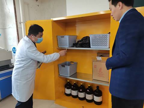 本次实验室安全检查邀请专业从事高校实验室安全防控专家团队--江苏天达绿源安全评价有限公司丁新龙教授一行,针对实验管理中心、化材、食药、生环学院各生化类实验室及危化品存储仓房进行了全面细致的安全隐患排查。检查活动严格按照《教育部关于加强高校实验室安全工作的意见》《高校教学实验室安全工作检查要点(2019)版》要求进行。实验管理中心负责人和实验室安全管理工作人员全程随行检查、通行一天的检查。专家们对学校生化实验室存在的安全隐患、风险点做出了详细的梳理记录。