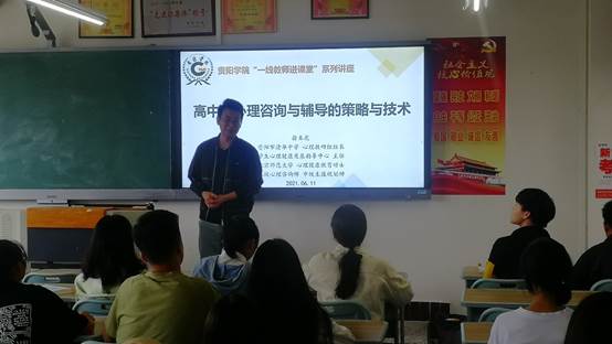 6月11日,贵阳市清华中学心理健康教育课教师徐本虎为2020级应用心理学专业学生作题为《高中生心理咨询与辅导的策略与技术》的教学展示及学术交流。