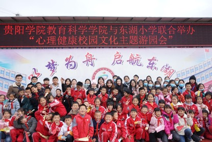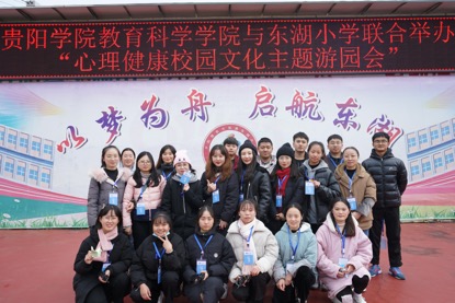 2021年11月17日,贵阳学院教育科学学院与开阳县蒋家寨东湖小学联合举办“心理健康校园文化主题游园会”。本次活动由我校教师颜媛、刘锋、刘蕾、彭麟、袁媛、向洁、胡力诗、何壮、张金运带队,我校东湖小学实习学生及学生志愿者参加。活动旨在培养和提高学生的社会实践能力,促进学生德智体美劳全面发展,丰富“三全育人”的形式和内涵。