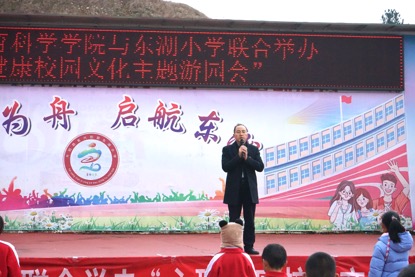 东湖小学校长潘官军在活动中致辞,他向贵阳学院教育科学学院师生表达了感谢。他表示,心理健康是健康生活的重要组成部分,既要关注学生的身体健康,还要关注学生的心理健康。最后预祝活动圆满成功。
