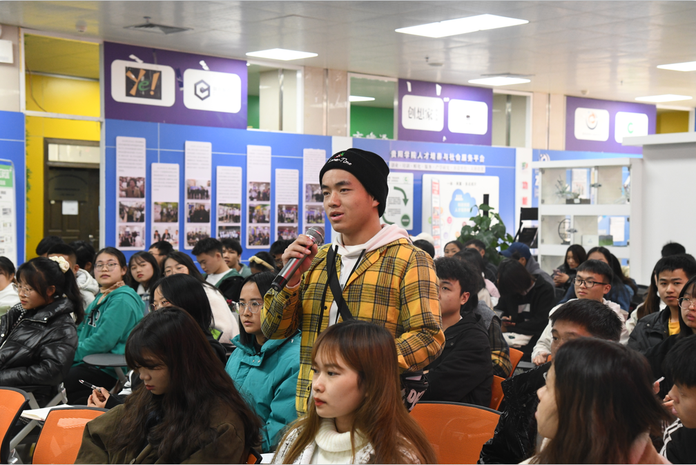 2021年11月23日,贵阳学院-贵州双龙航空港经济区创新创业沙龙(第7期)在贵阳学院大学科技园博雅众创空间举办。中国国际“互联网+”大学生创新创业大赛国赛评委、贵州数联铭品科技有限公司首席运营官(联合创始人)董博为同学们开展了一场中国国际“互联网+”大学生创新创业大赛贵阳学院论坛。