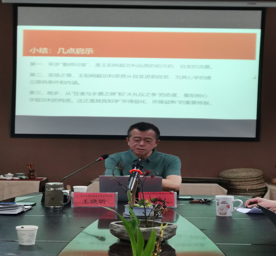 2022年6月24日下午,贵州省王阳明研究会会长、贵州省王阳明研究院副院长、贵州省文史馆馆员、贵州省省管专家、贵州省知名阳明学专家王晓昕受邀到我校开展题为“阳明心学的超功利品质”的学术讲座。讲座由我校阳明学与黔学研究院院长赵平略主持。